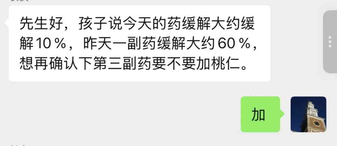 遵此思路治疗两周后,前往西医检测,阑尾宽度已由12.8mm缩小到8mm,接近5-6mm的正常水平。西医方面也不再坚持必须手术,认为可以继续观察。在此基础上,对前期药方做出微调,炮附子减量,以其阳气还复故也,增加鸡内金和桃仁,以活血散结为当下要务故: